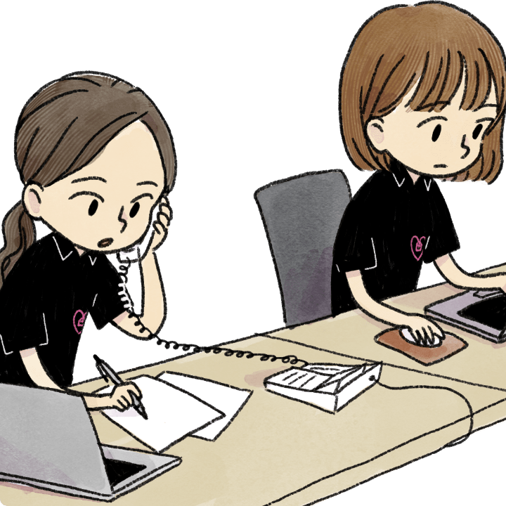 入職後は、さつきホームクリニックにおける診療の考え方や関わり方を直に感じられるよう、訪問診療に同行していただきます。また、実際の業務がどのように進められるのかを知るために、先輩職員の対応を隣で見学していただきます(マニュアルもあります)。